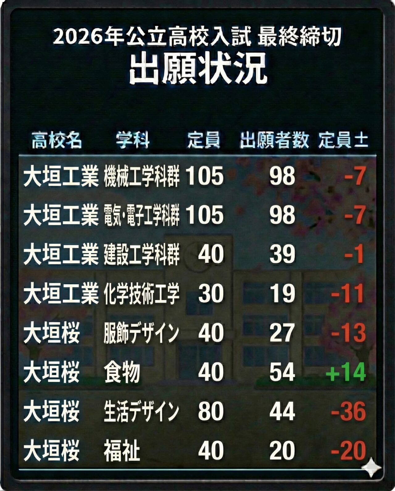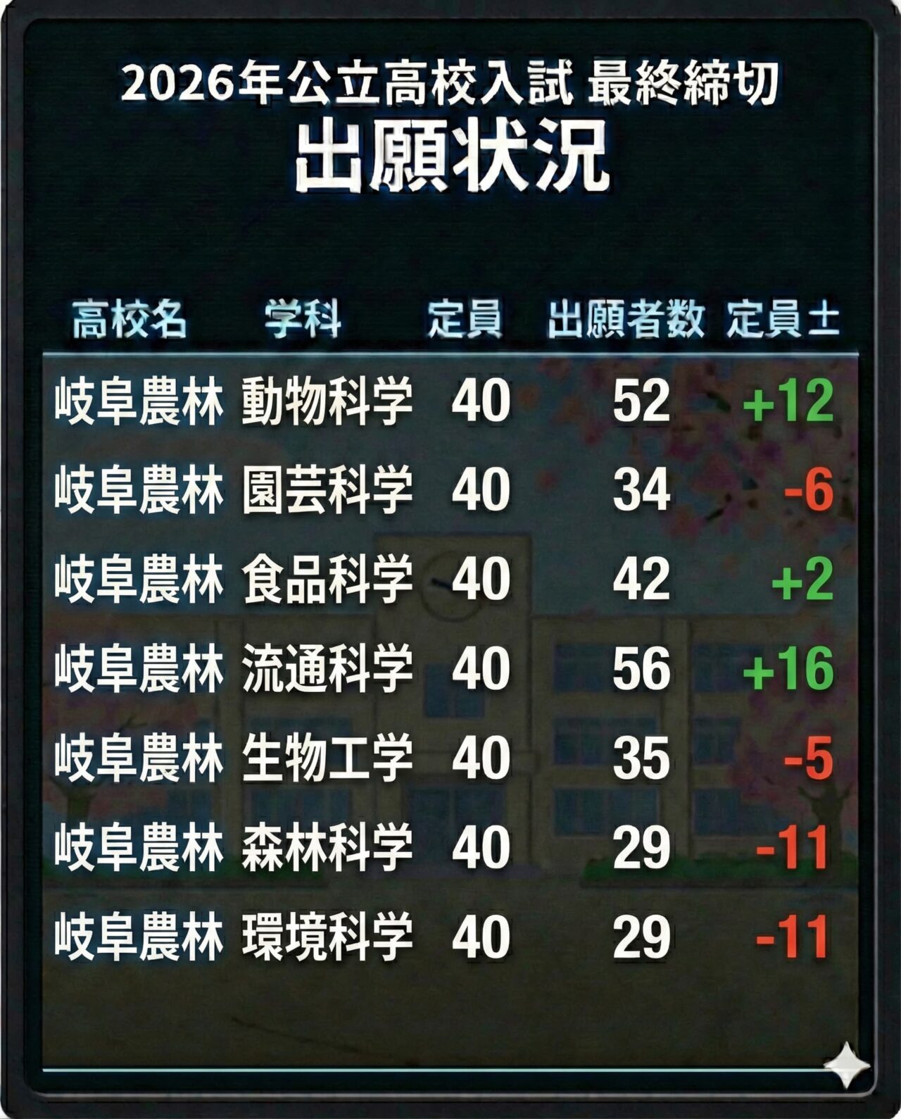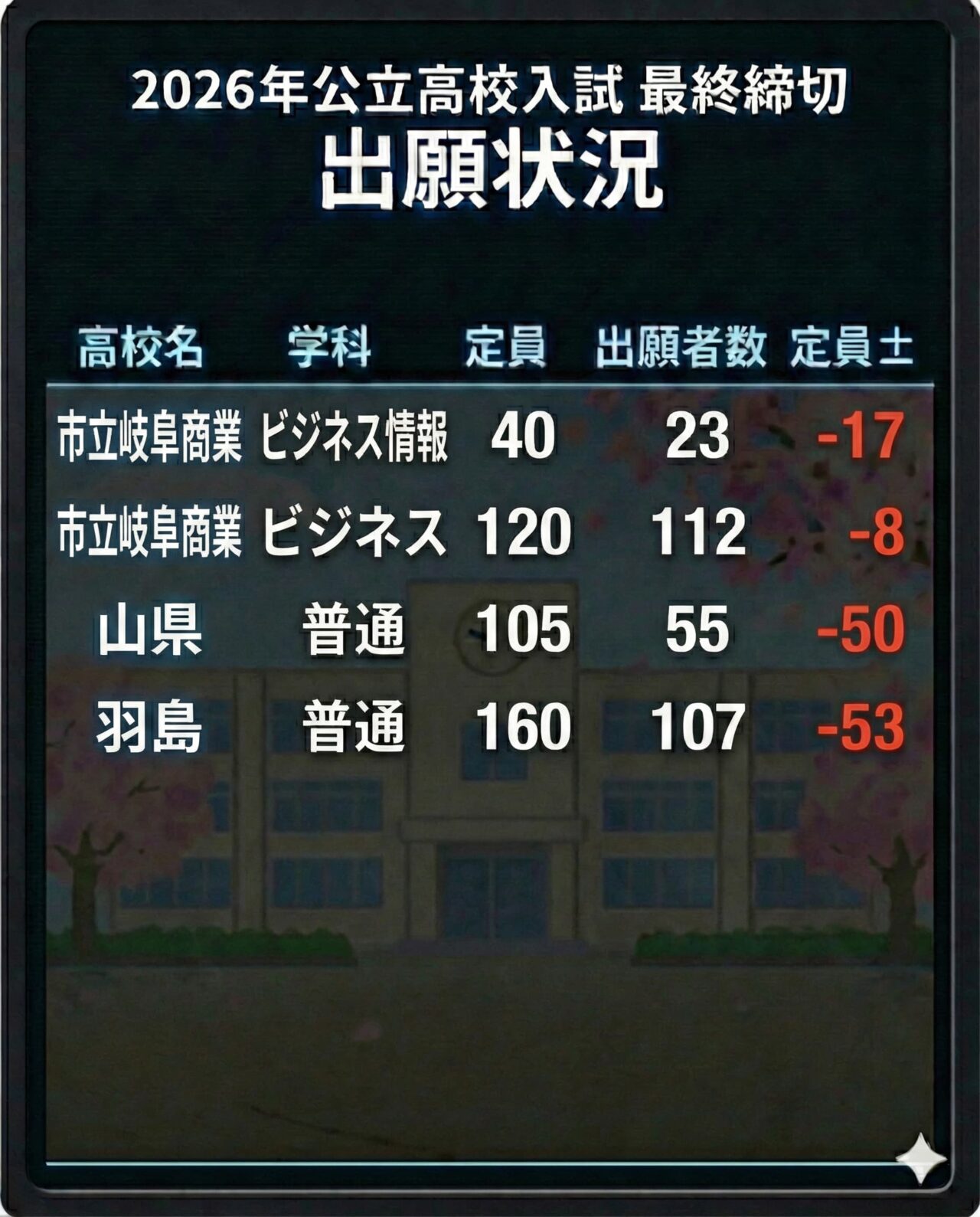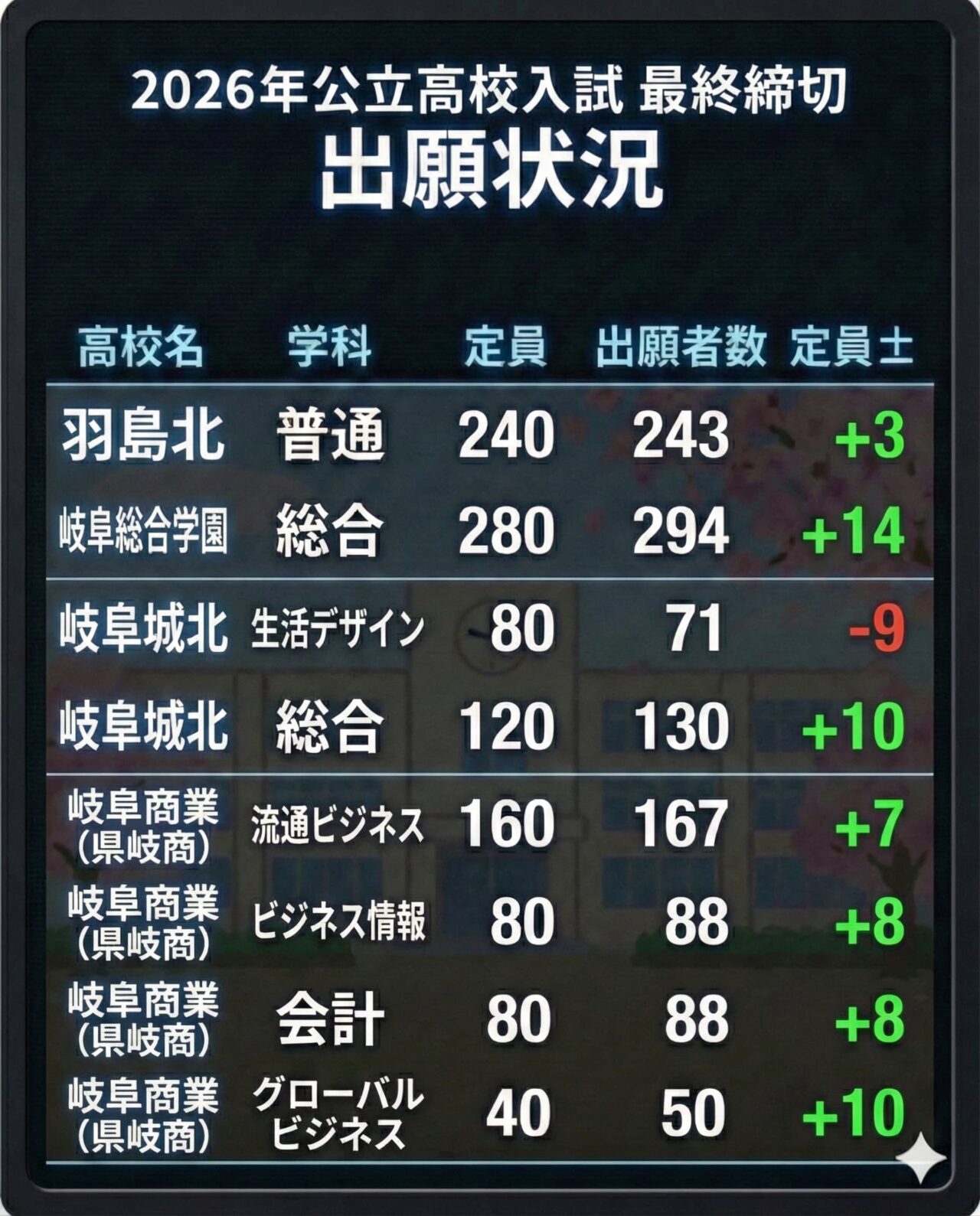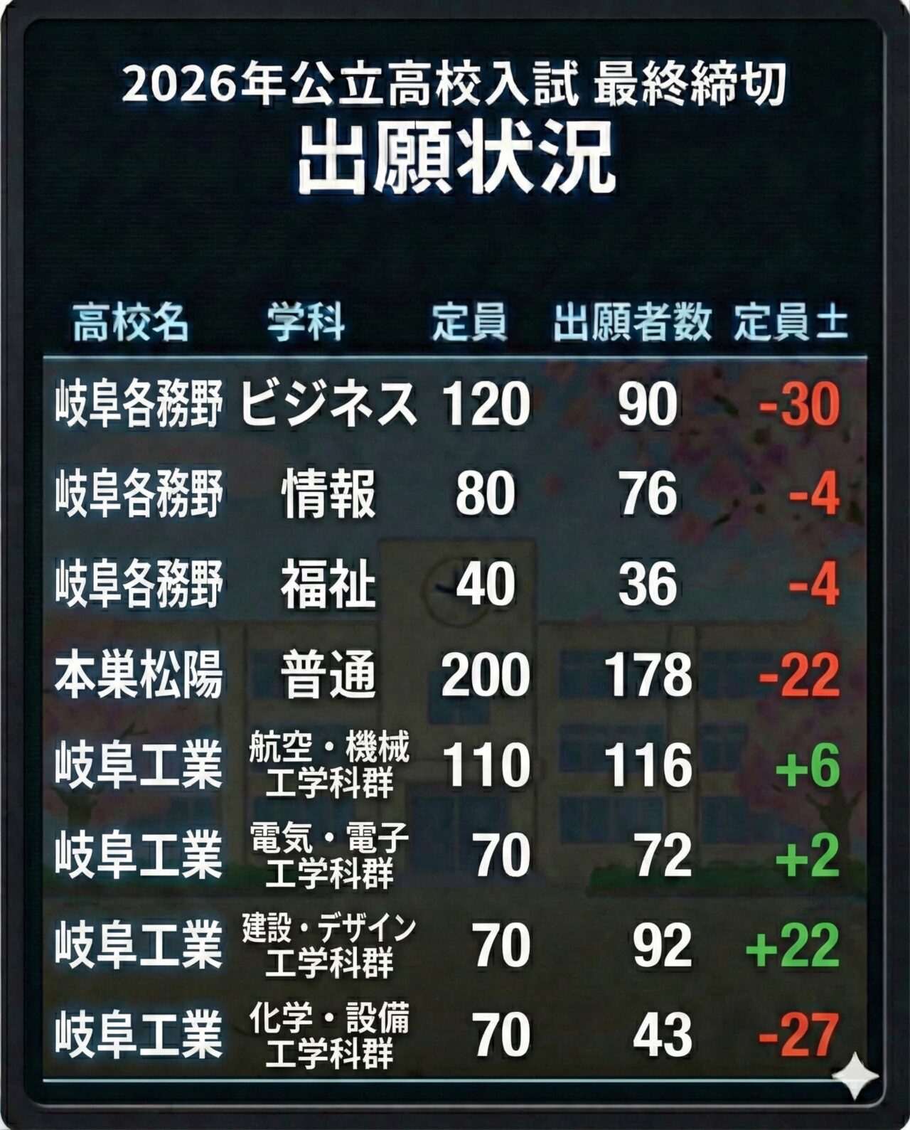 岐阜地区と西濃地区の一部の高校をまとめました。