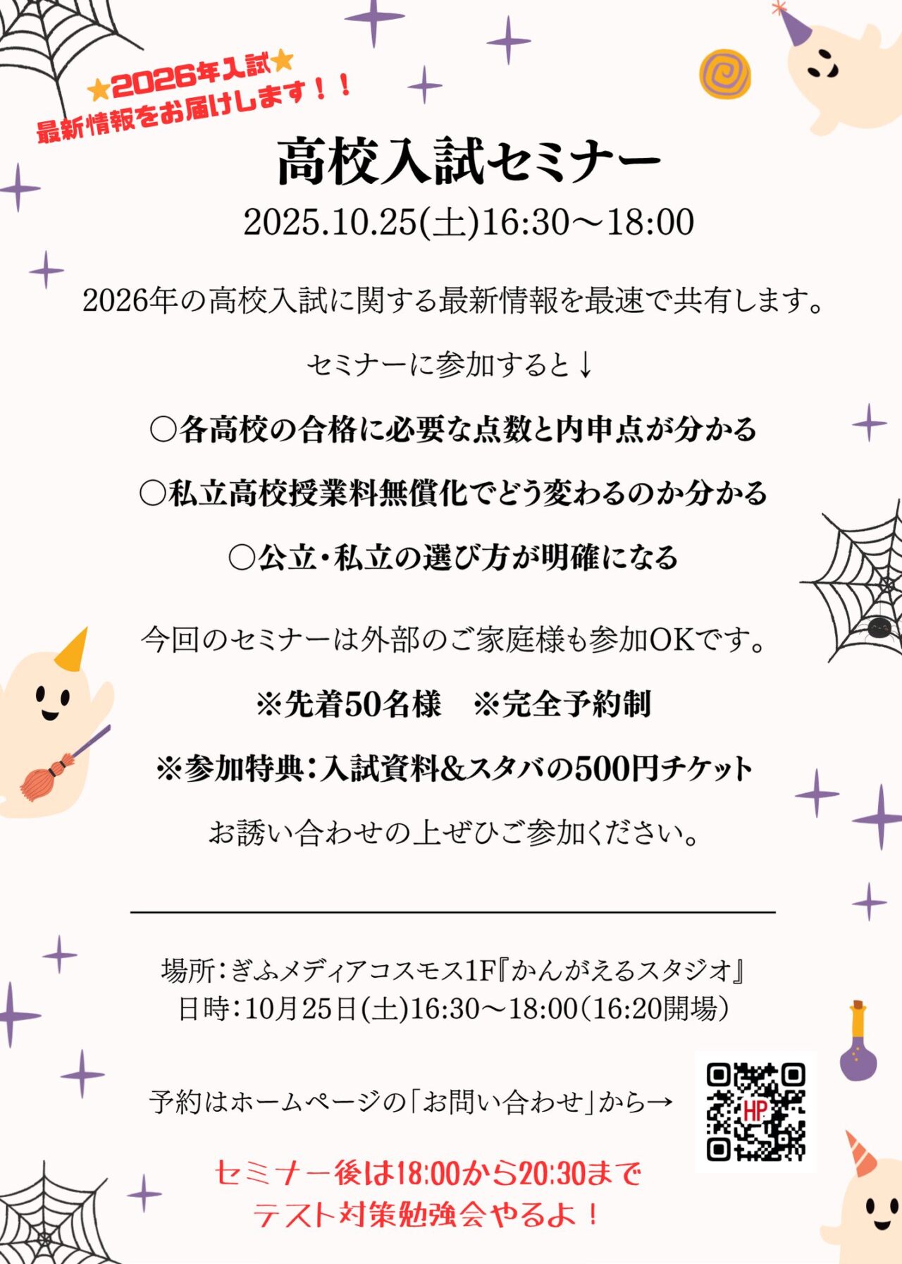 10/25(土)16:30~18:00『高校入試セミナー』やるよ